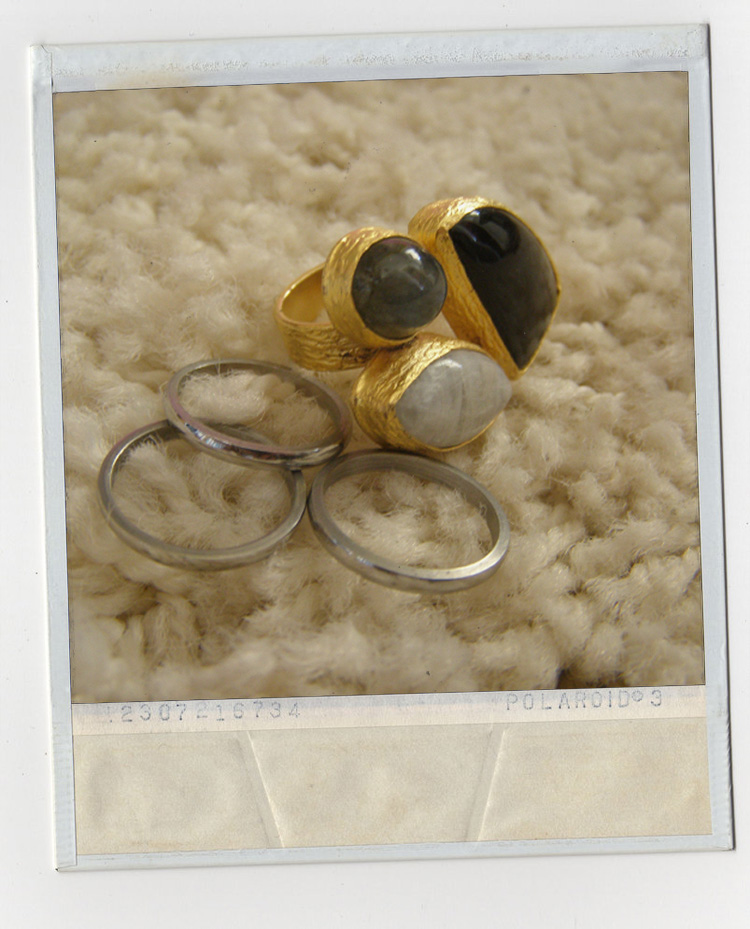 And last but not least rings. Simple silver rings and a gold plated one with semi-precious stones.