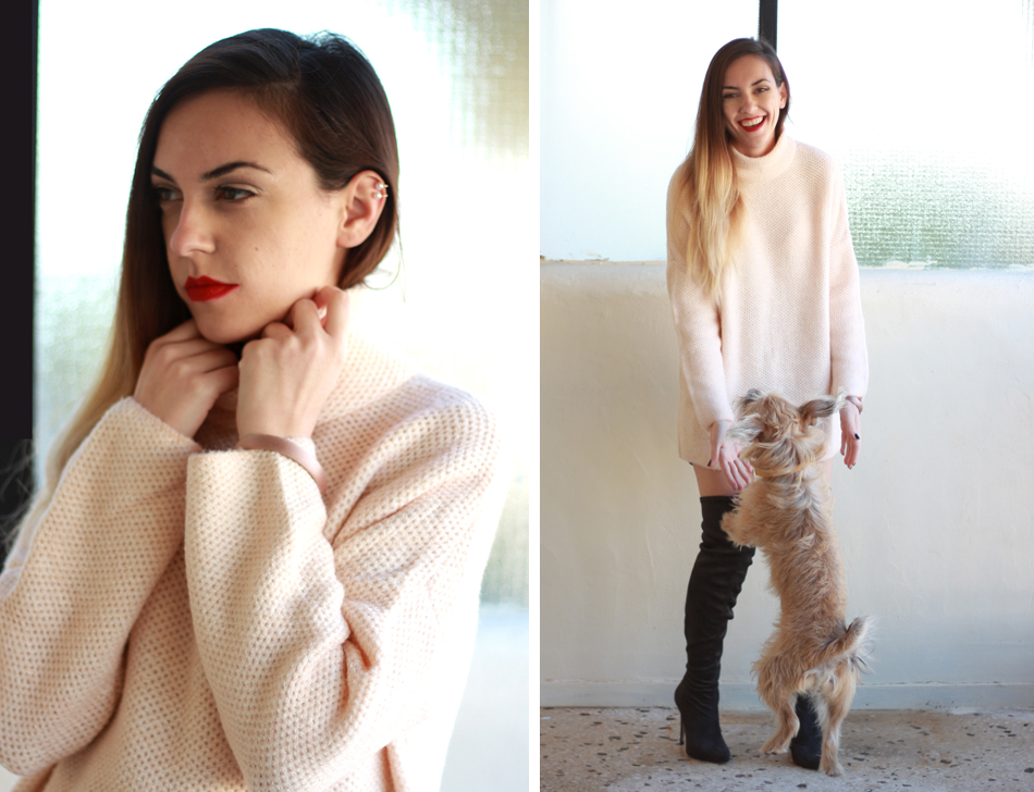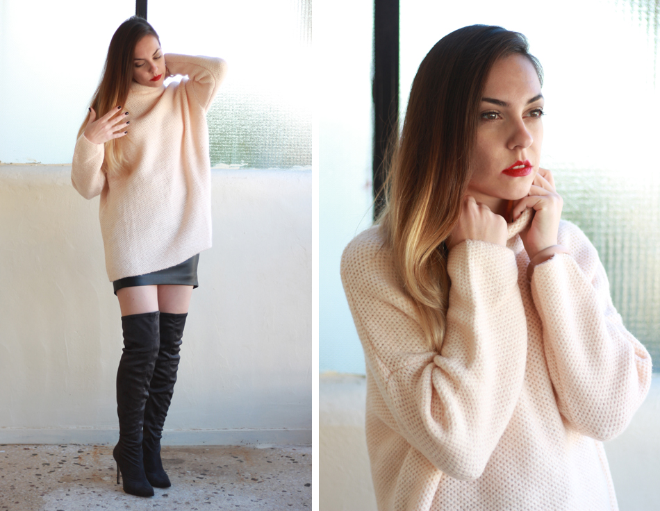 Cold weather needs warm, oversized and cosy sweaters. Today I styled mine (which is a birthday gift) with a mini leather skirt and thigh high suede boots (the birthday gift I did to myself).