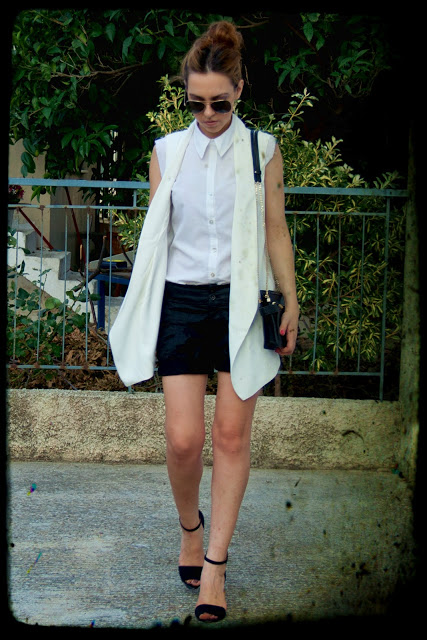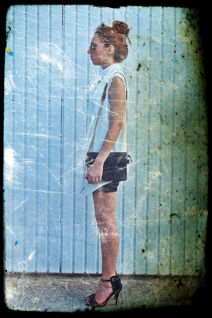 Wow!!!!! I have missed YOU & your blog my dear!!!You look fantastic, the shorts and the slevless vest are WONDERFUL, and the shoes and bag are TO DIE FOR!!!! A great look from a gorgeous woman! Mou aresei poli to ”dirty”effect stis fotografies. Ena apithano POST!