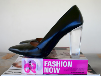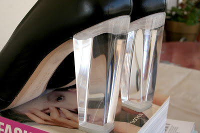 Their transparent plexy glass heel give sthe illusion that you walk on the toes. Hm, maybe that makes it the perfect pair for today!