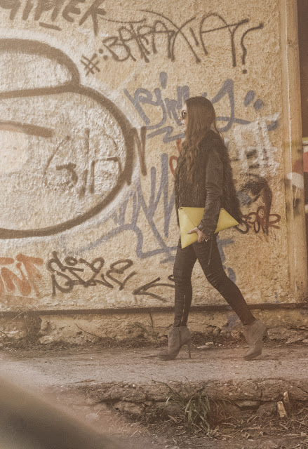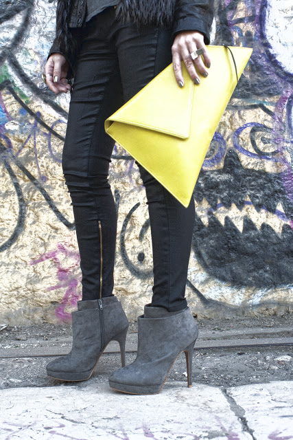 Wearing Zara faux fur vest, Replay leather jacket, Junk Food Star Wars t-shirt, Zara leather pants and ankle boots and Georgina Skalidi envelope bag. Jewelry made by me.